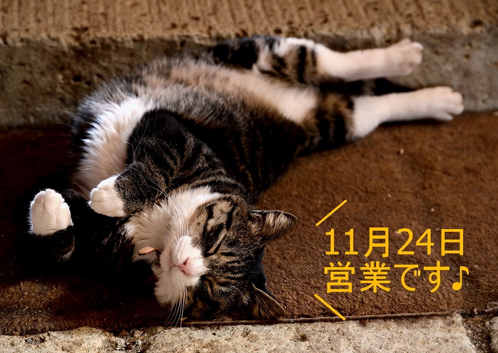 11月24日(月)は「勤労感謝の日」の振替休日ですが、当店は通常通り10:00-17:00で営業致します(12:00-13:00はお昼休み)。
