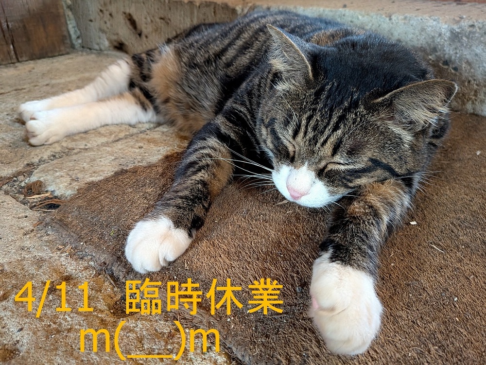 4月11日(土)は、都合によりお休みとさせて頂きます。
